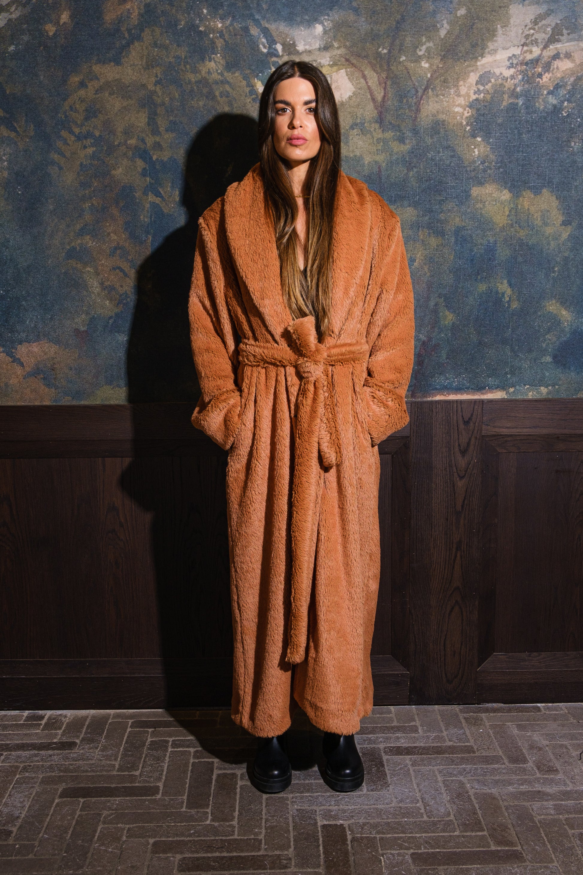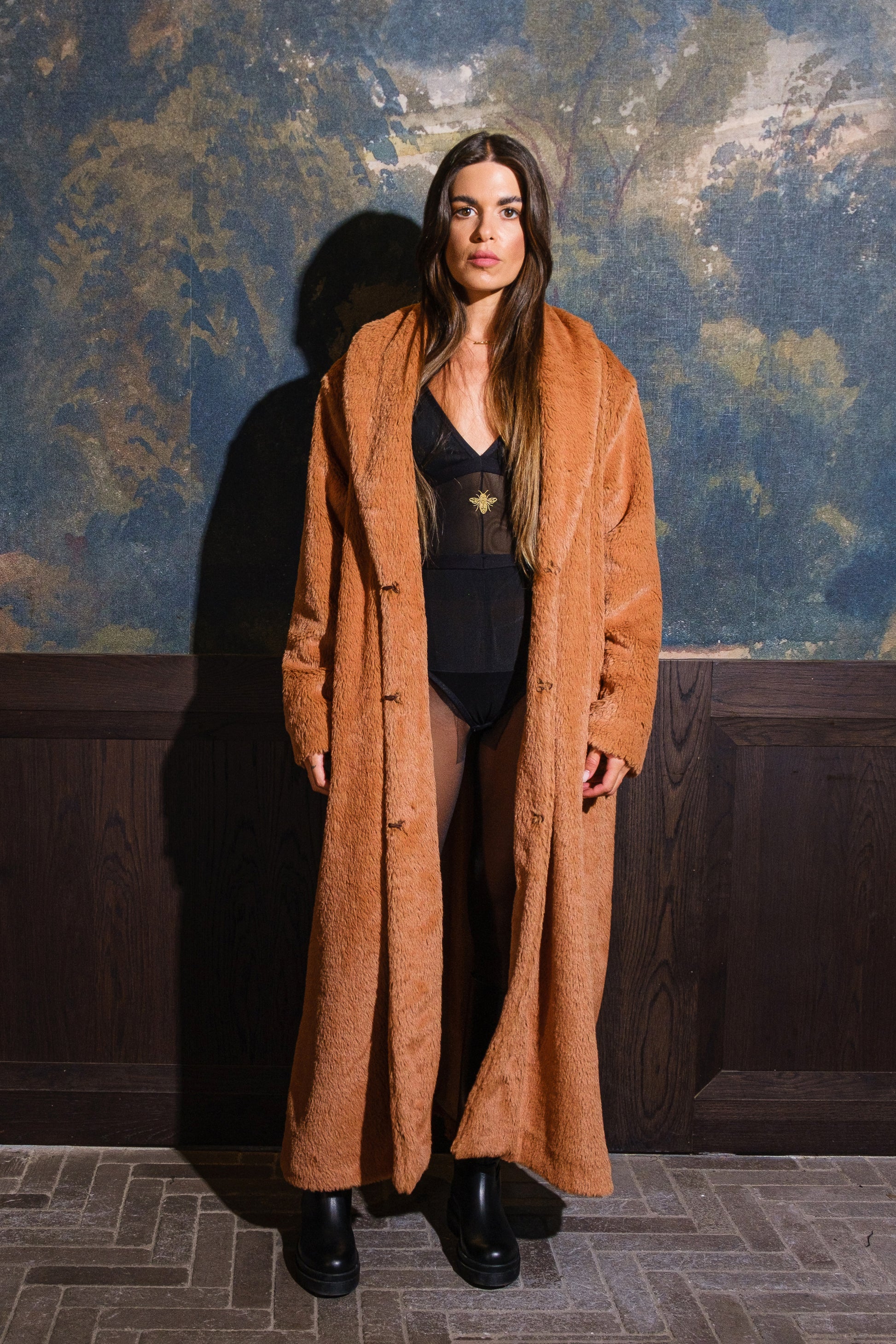 The Foxy Teddy Fur is a stunning eco-fur coat in a warm fox-inspired hue, exuding understated luxury and femininity.