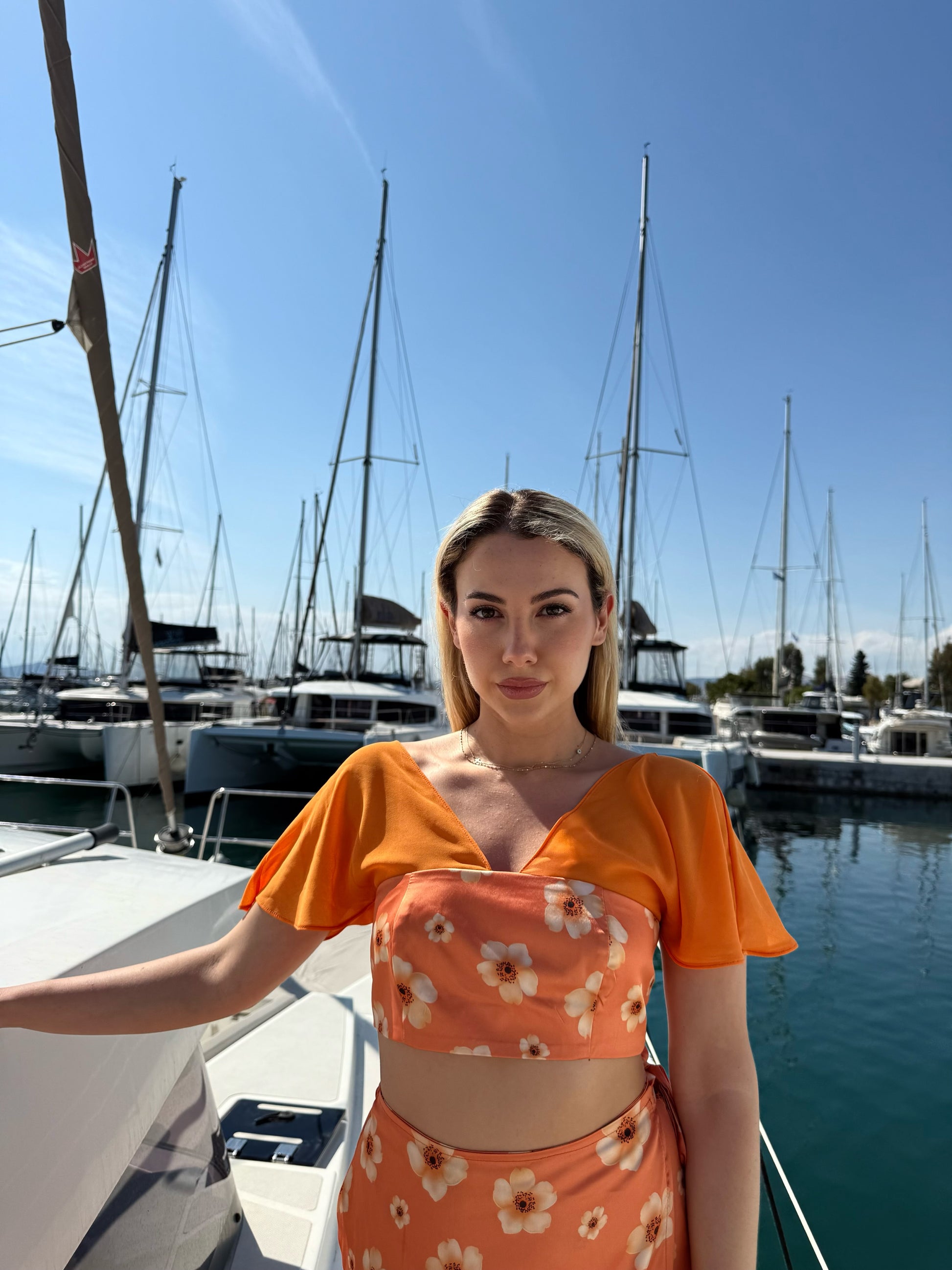 Το σατέν μέρος διακοσμείται με αποκλειστικό print από ιβίσκους , σχεδιασμένους από την ομάδα μας, ενώ η μουσελίνα προσθέτει διάφανη κίνηση και ροή, δημιουργώντας ένα μοναδικό layering αποτέλεσμα. Η κρουαζέ γραμμή της εφαρμόζει εύκολα σε κάθε σώμα χάρη στα διακριτικά ρελάκια, που επιτρέπουν να τη δέσετε όπως ακριβώς σας ταιριάζει.