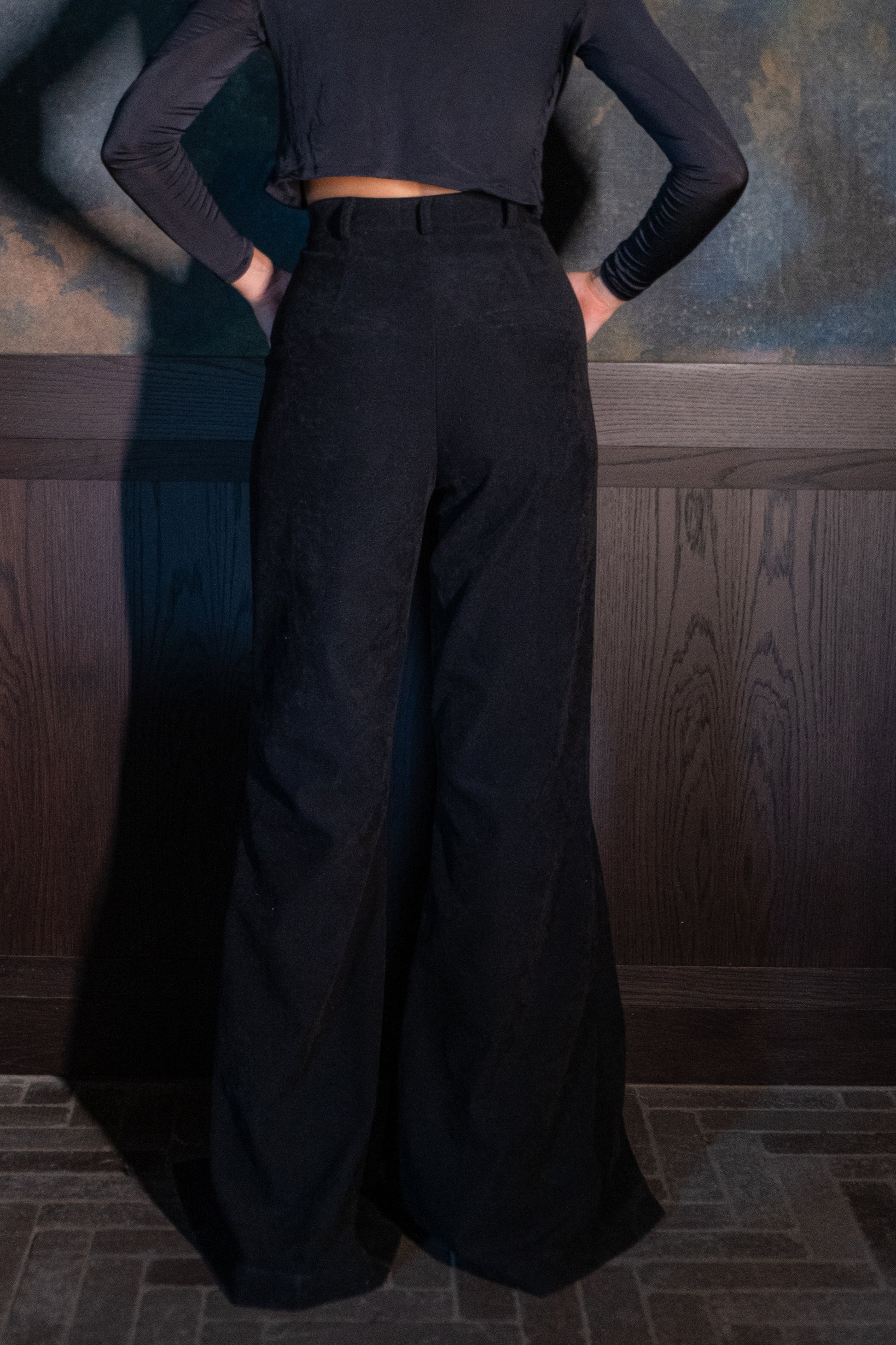 The Panther Pants perfectly complement the Panther Open-Back Blazer, creating a sleek and striking coordinated look.