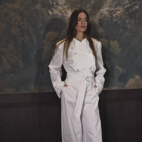 Η White Moo Jumpsuit είναι η ολόσωμη φόρμα που συνδυάζει τη θηλυκότητα με τη σύγχρονη κομψότητα και την άνεση.